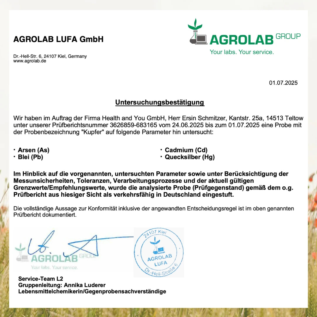 Unser Produkt wird mit viel Liebe und Sorgfalt in Deutschland für dich hergestellt. Es ist von einem unabhängigen Labor geprüft, frei von Zusatzstoffen und selbstverständlich citratfrei. Damit du dich rundum gut und sicher fühlst.