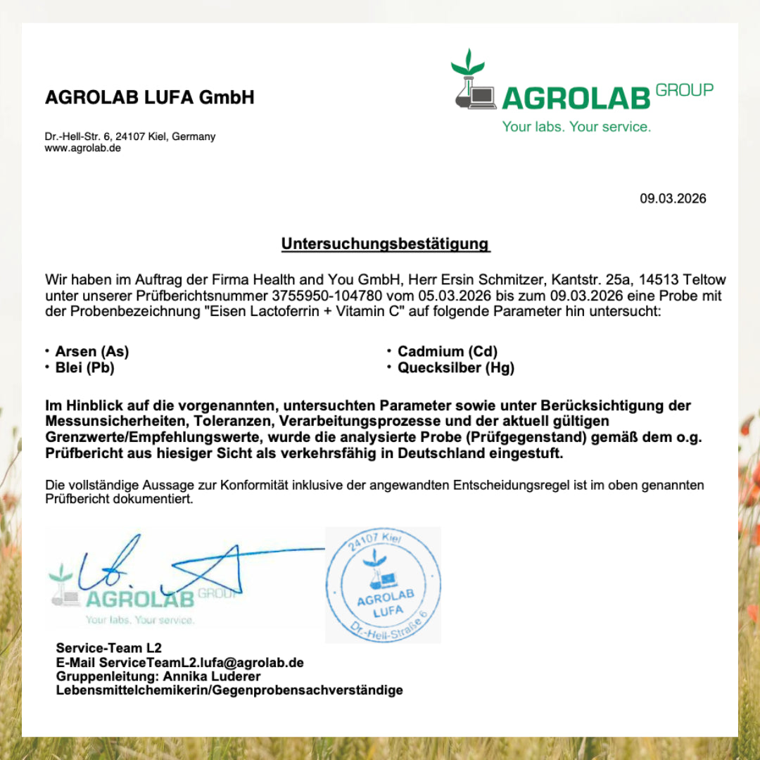 Eisen plus Lactoferrin ist eine Ergänzung zur täglichen Ernährung und ersetzt keine ausgewogene und abwechslungsreiche Ernährung sowie eine gesunde Lebensweise.