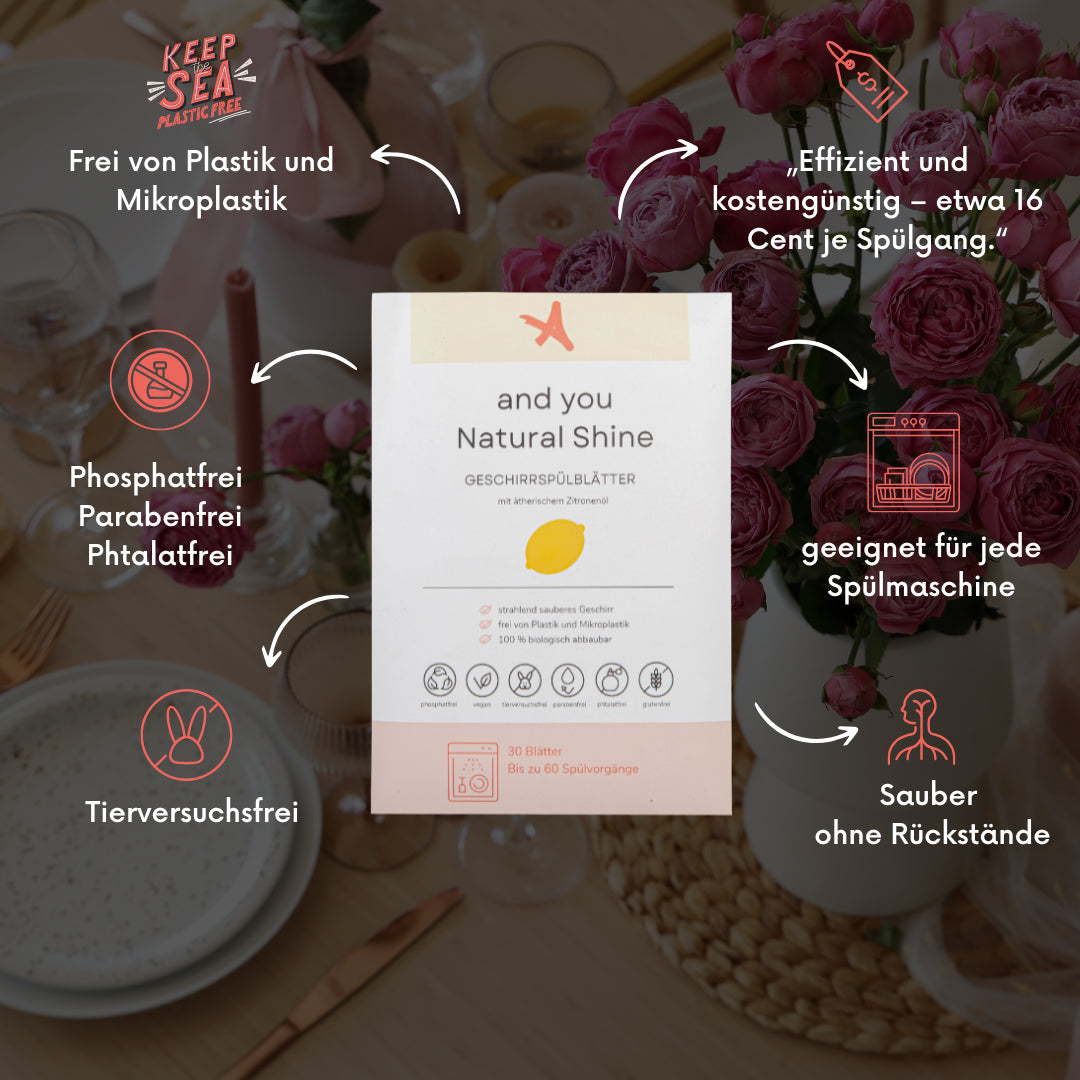 And You Natural Shine Geschirrspülblätter 60 Spülgänge | Umweltfreundlich & plastikfrei