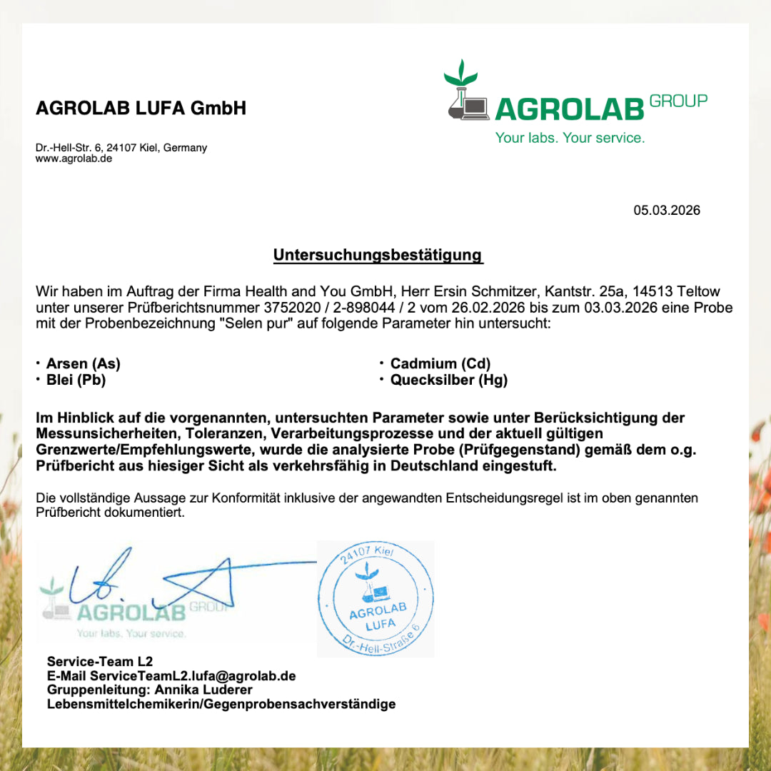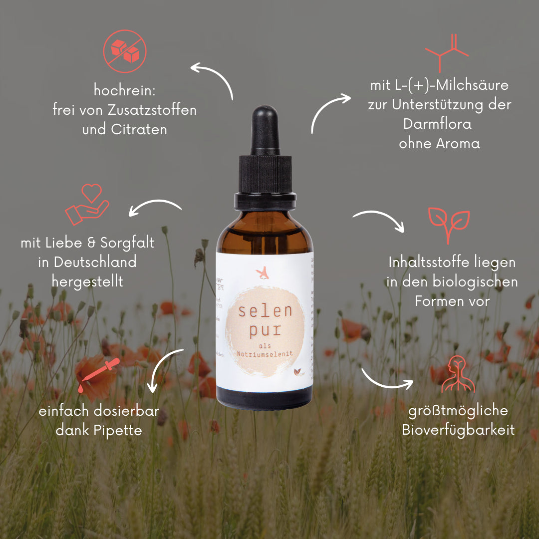 - 200 μg Selen in jeder Tagesdosis von 2 Tropfen