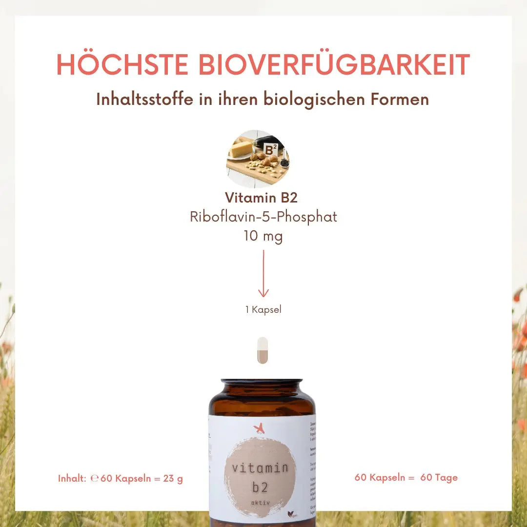 Unsere Kapseln enthalten hochdosiertes Vitamin B2 in seiner bioaktiven Form Riboflavin-5-Phosphat.