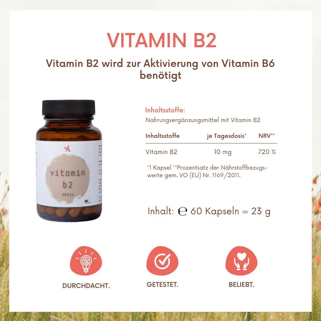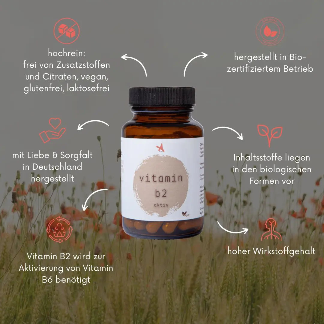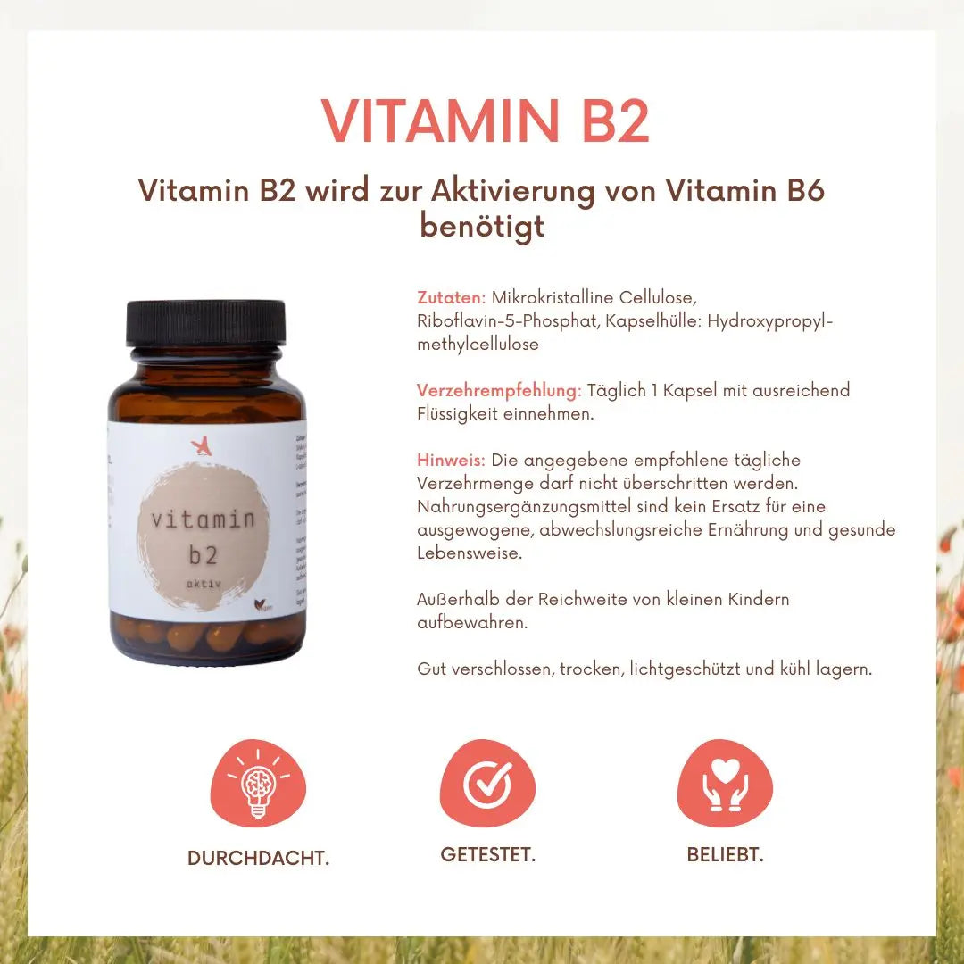 Vitamin B2 ist für den Stoffwechsel unerlässlich, um Vitamin B6 (Pyridoxin) aus der Nahrung in seine aktive Form (P5P) umzuwandeln.