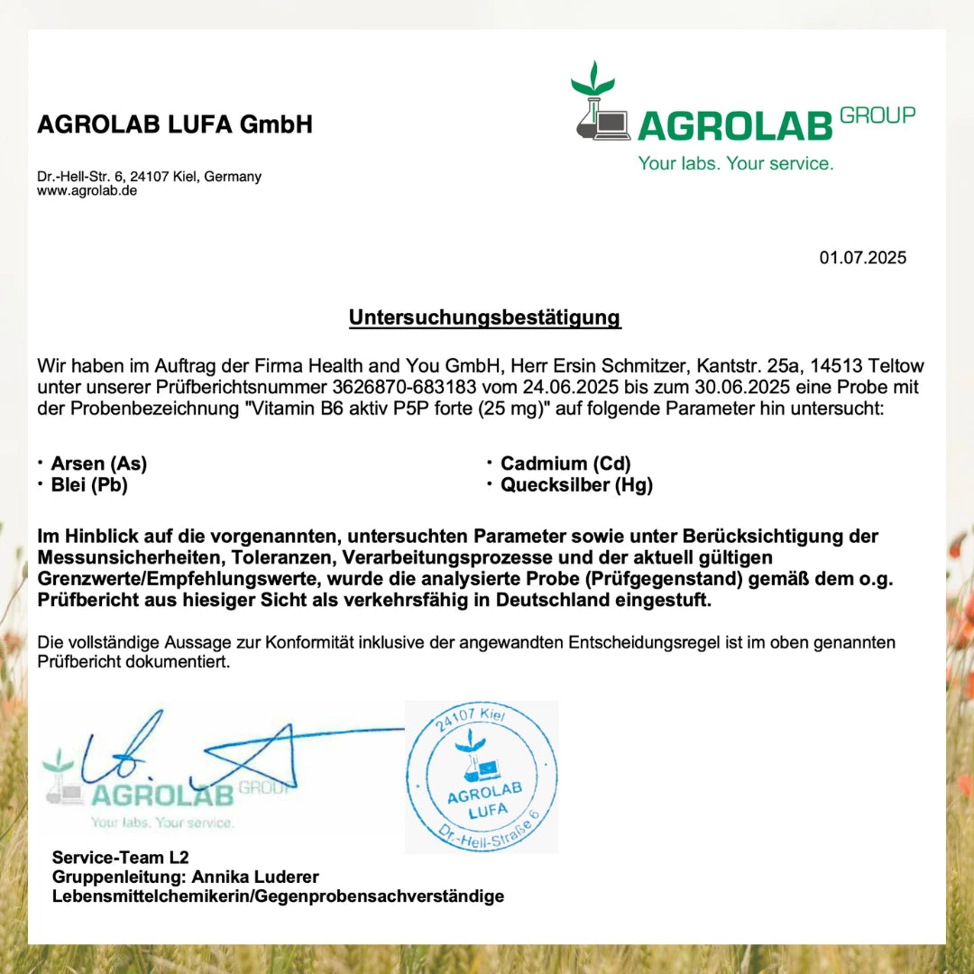 - hochdosiertes Vitamin B6 in seiner aktiven Form (P5P)