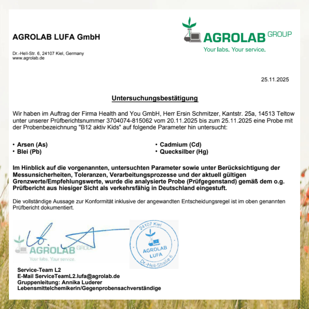 - Bioverfügbar: enthält bioaktive Vitamin B12-Formen